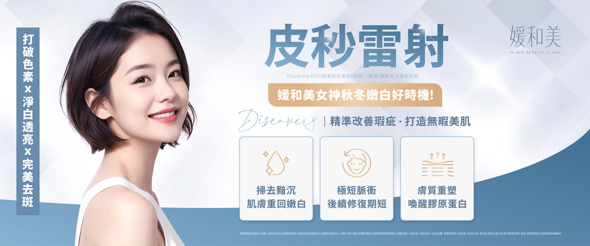 皮秒雷射為醫美項目裡面較為入門的療程,專門對付皮膚裡面的黑色素,同時可以改善淨亮,除斑,毛孔粗大,痘疤等等問題。
