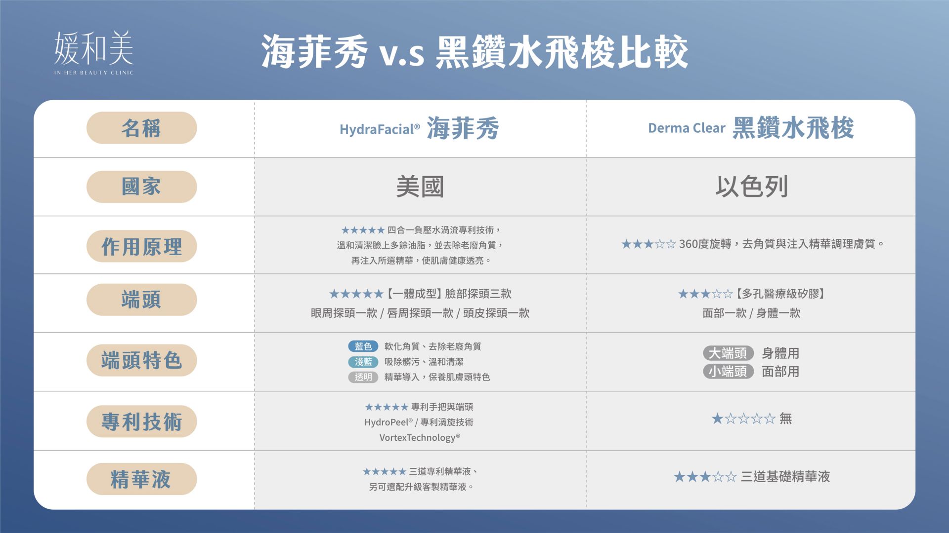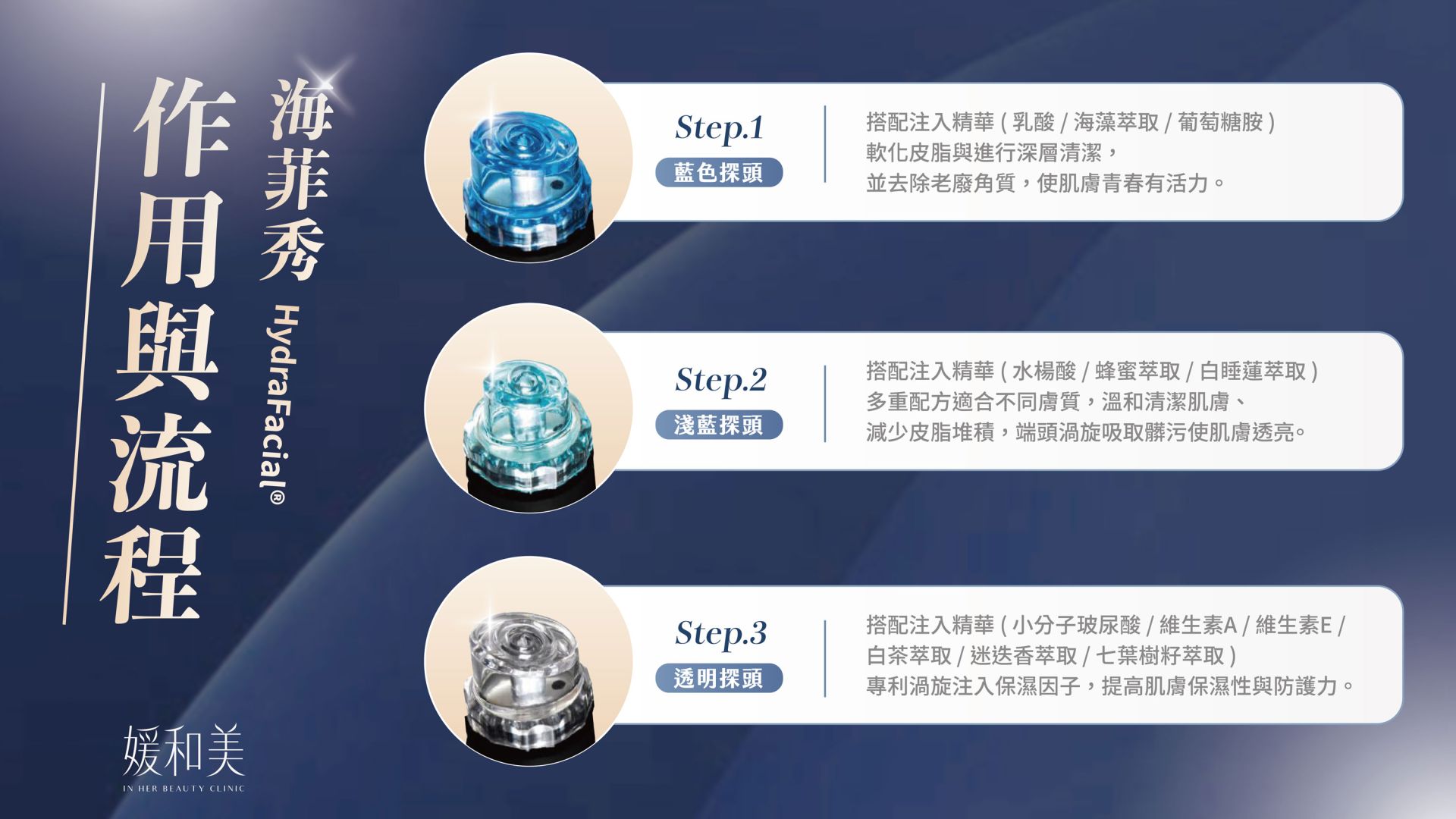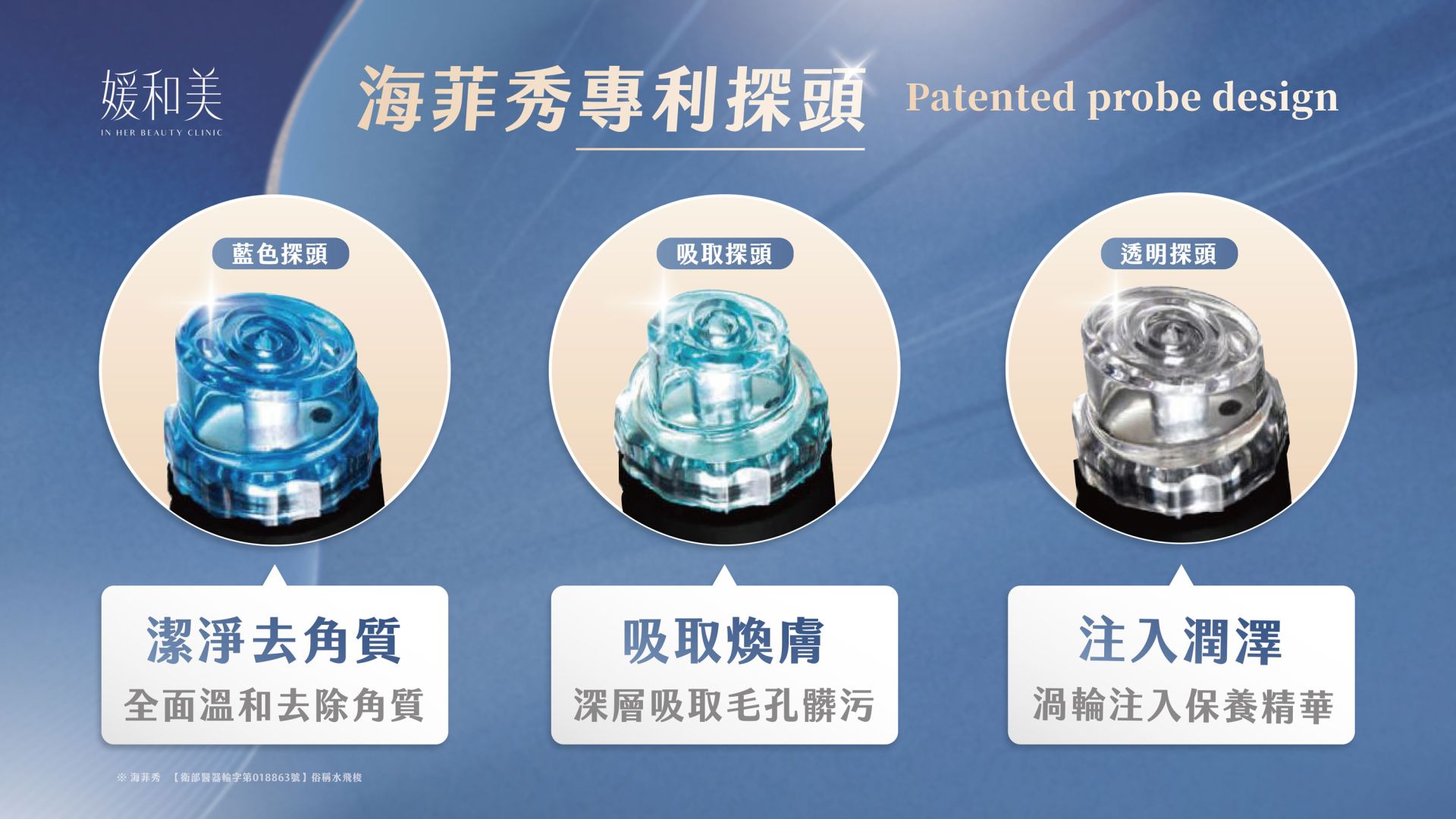 2.吸取煥膚:淡藍色端頭,無痛深層吸取毛孔殘汙,加強角質代謝。